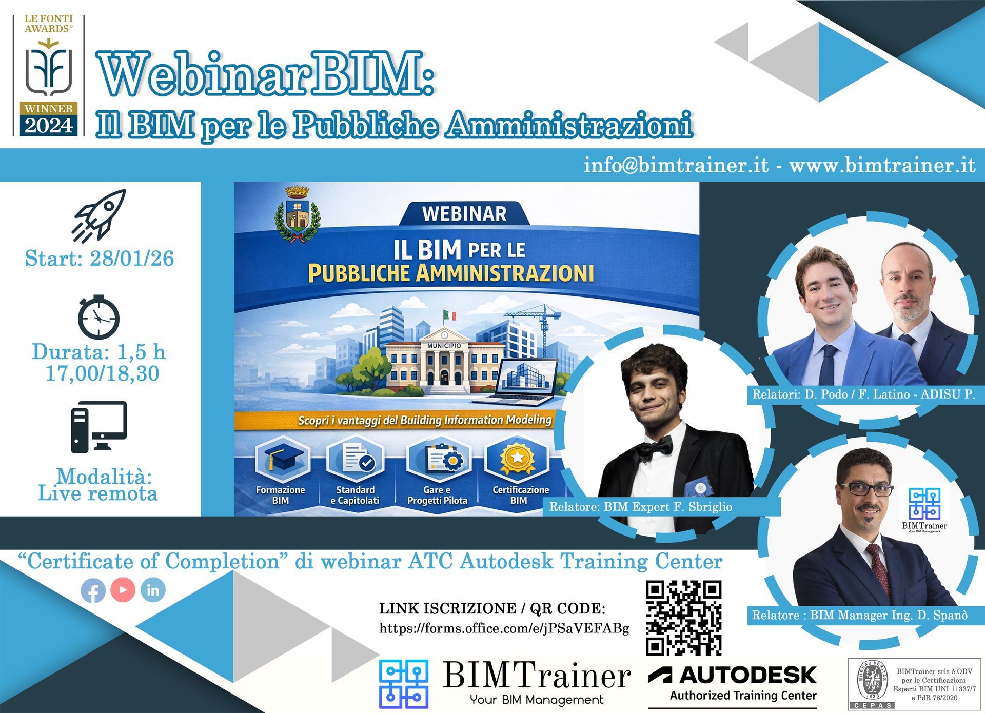 PIVA/CF: 16868341005 - Mail: info@bimtrainer.it - dspano@bimtrainer.it - Tel: 06/97611269 - Cell: +39 348 3218115
